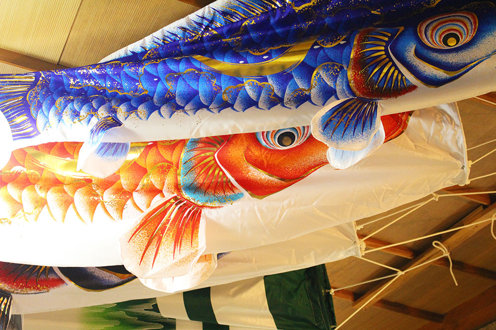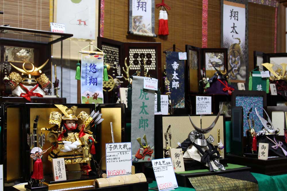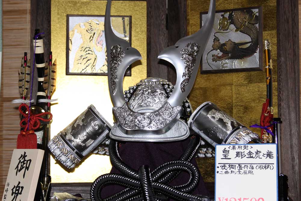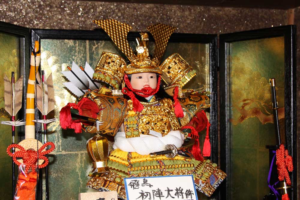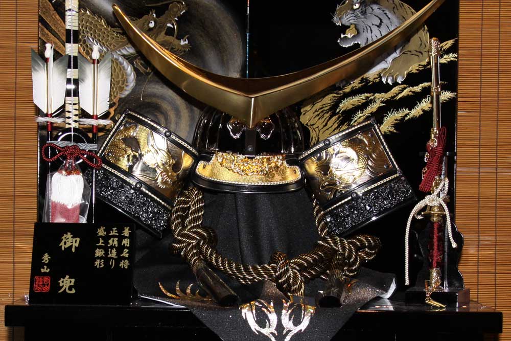 端午の節句にお子様の健やかな成長を願って飾られる五月人形(鎧・兜)や鯉のぼり。